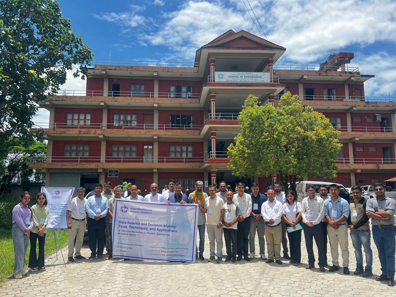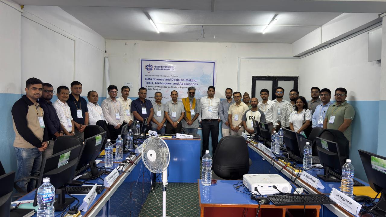 पोखरा विश्वविद्यालय, विज्ञान तथा प्रविधि संकायले स्कूल अफ इन्जिनियरिङ्गसँगको सहकार्यमा र एमएस्सी बायोइन्फर्मेटिक्स कार्यक्रमको समन्वयमा “तथ्यांक विज्ञान र निर्णय निर्माणः उपकरण, प्रविधि र अनुप्रयोगहरू” शीर्षकको दुईदिने मानव संशाधन विकास कार्यक्रम २०८२ आषाढ २०–२१ गते (२०२५ जुलाई ४–५) विजयपुर ब्लक बि को “EGEA Green Lab”  मा सफलतापूर्वक सम्पन्न गरेको छ ।
