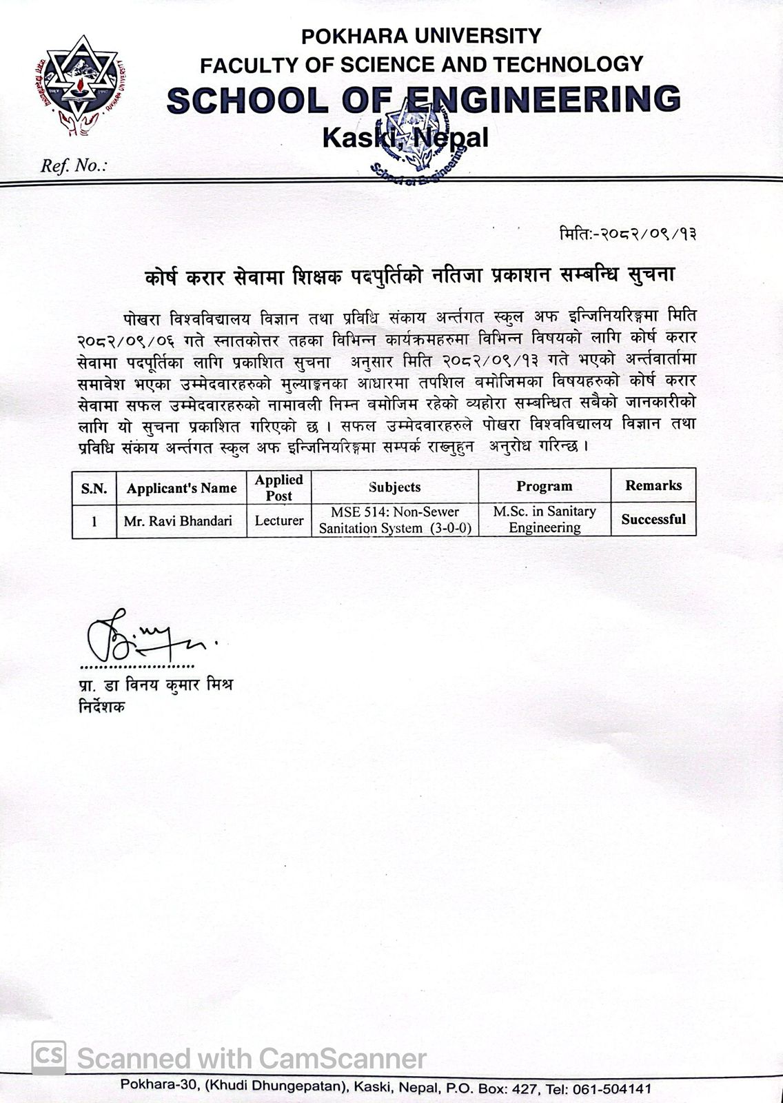 3. कोर्ष करार सेवामा शिक्षक पदपुर्तिको नतिजा प्रकाशन सम्बन्धि सुचना।