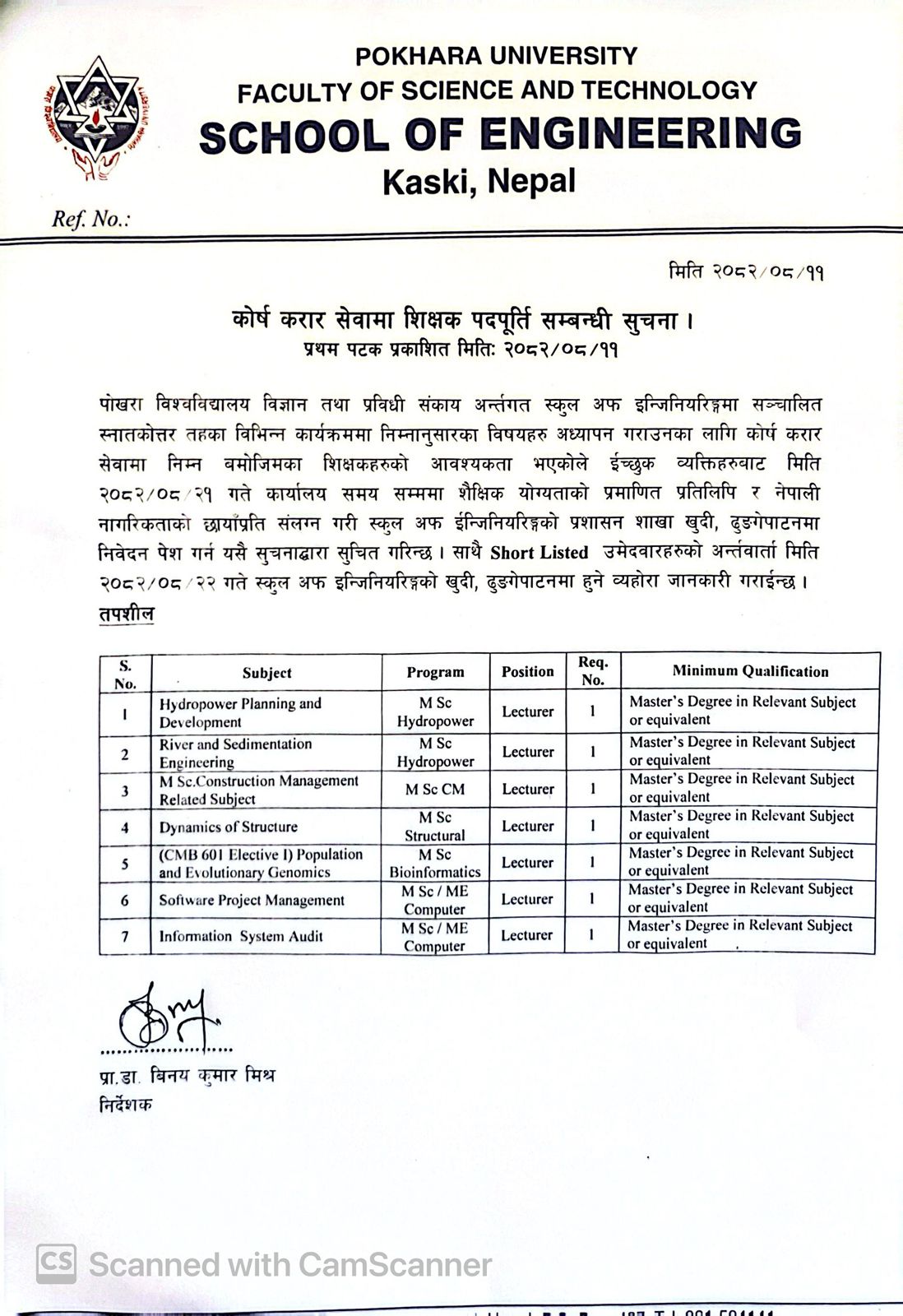 - स्कुल अफ ईन्जिनियरिङ्गको स्नातकोत्तर तह तथा स्नातक तहमा (पूर्ण शुल्कीय) पुनः भर्ना सम्बन्धी सुचना ।