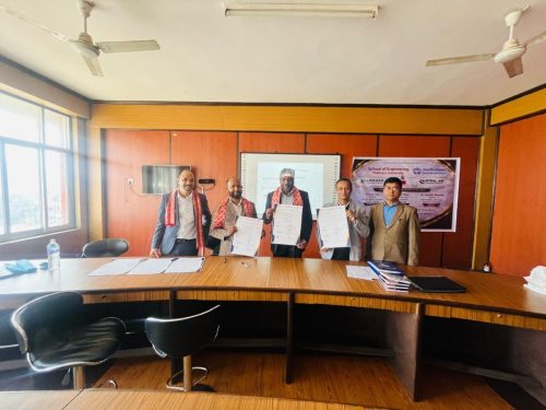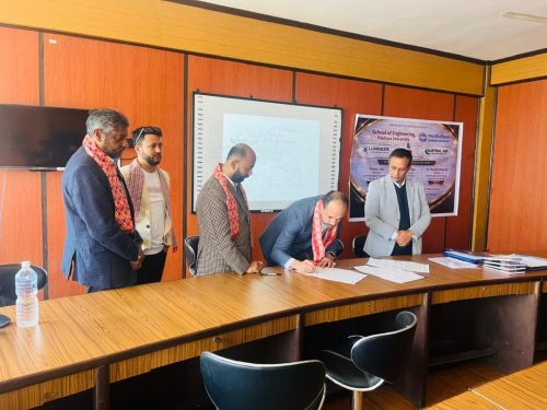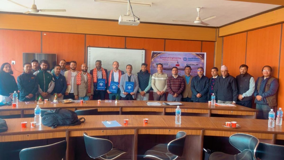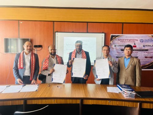 February 22, 2026 — The School of Engineering (SoE), Faculty of Science and Technology (FoST), Pokhara University, successfully organized a Memorandum of Understanding (MoU) signing ceremony today in the presence of distinguished industry representatives, faculty members, and staff. The MoU was signed between SoE and three reputed organizations: Austral Air Conditioning Pty Ltd, Australia; Lumineer Digital Engineering Pty Ltd, Australia; and Aided Modeling with Design Nepal Pvt Ltd, Nepal. The agreement establishes a cooperative framework to facilitate student internships and potential employment placement opportunities for students of SoE, Pokhara University.