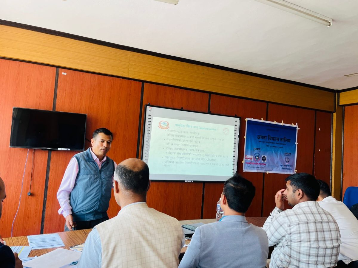 The training featured a series of interactive and insightful sessions delivered by experienced professionals. Ms. Tol Maya Thapa presented on the interrelationship between academic and administrative tasks. Er. Manoj Poudel conducted two sessions focusing on inventory management and auction/sale procedures of outdated assets, as well as work evaluation and academic visit management. Mr. Keshav Raj Dhakal delivered sessions on auditing and audit irregularities and their settlement. Er. Nabin Gautam presented on public procurement, while Mr. Surendra Babu Tiwari conducted a session on public communication.